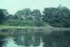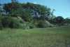 Figure 6. Stable bluff with a vegetated bluff face and an armored shoreline. The bluff face is fully vegetated and supports a mature stand of trees with vertical trunks. The presence of a wooden bulkhead suggests that erosion has occurred in the past. |