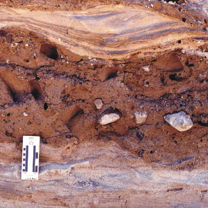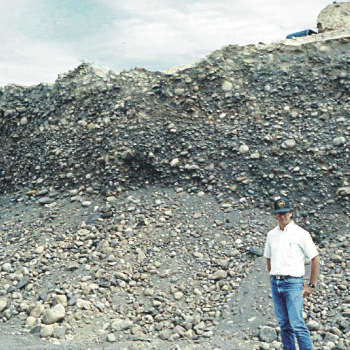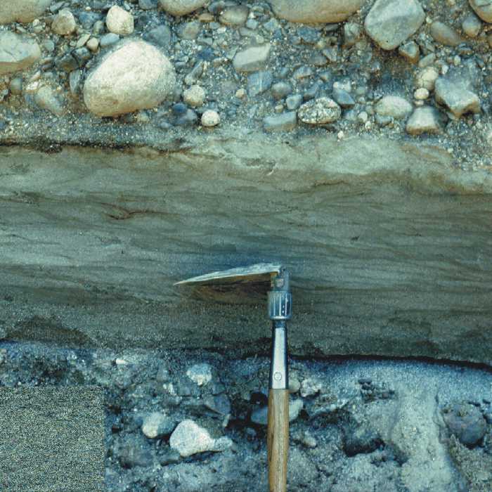The photos below are examples of the various material sizes as they are observed in the field. Note especially the photos at the bottom of the page. These photos show interbedded layers of materials as they may often be seen in the field. Materials in a gravel pit are rarely all a single size, and these examples show their possible complexity.