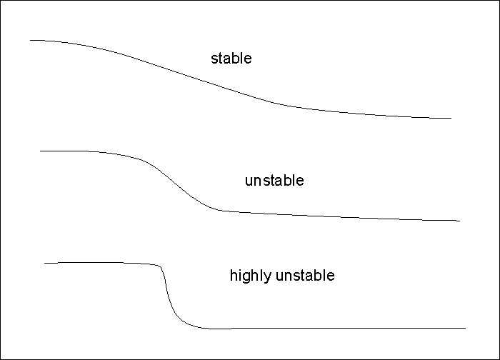 Figure 3. Cross sections showing stability categories of coastal bluffs. Definitions of categories are as follows: