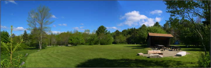 - Equipped with a large fire ring, hand pump for water, several picnic tables, an Adirondack shelter, and outhouse.