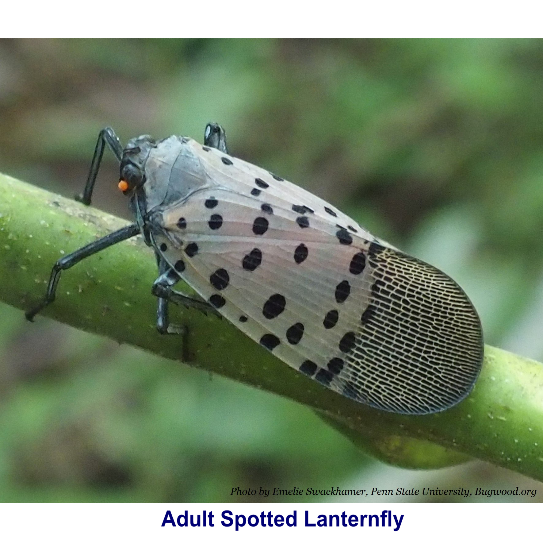 The Spotted Lanternfly, Lycorma delicatula, is a large planthopper native to China. It was first discovered in the United States in 2014 in southeastern Pennsylvania. SLF feeds on a wide range of host plants, including apple, grape, hops and many ornamental trees. Efforts to eradicate and quarantine spotted lanternfly have slowed its spread, but it has succesfully been able to establish in many additional states.