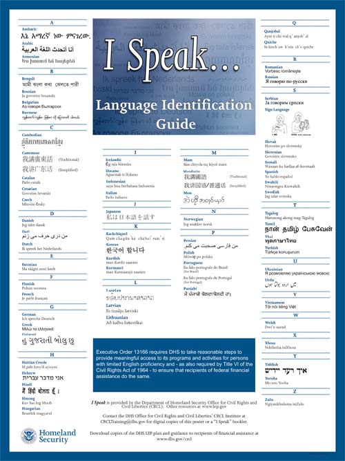 For your information, our Limited English Proficiency Plan and the "I Speak" poster can be reviewed in the following links.