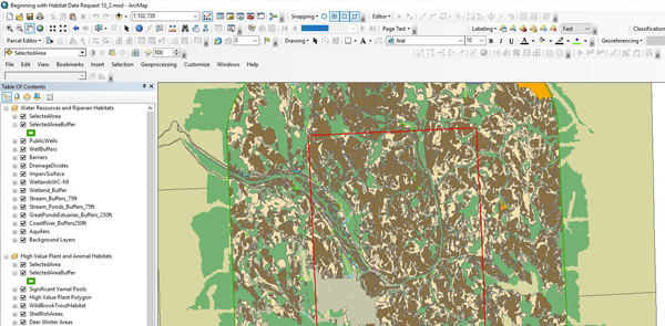 One of Beginning with Habitat’s most important services is to provide up-to-date natural resource maps and supporting information. Maps are provided in four formats, including the Online Map Viewer above, paper maps, digital data, and custom GIS maps: