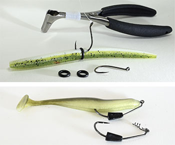 O-Ring: Much like Zip Ties O-rings can also be used as a means of securing wacky rigged soft plastic worm baits. Companies such as Fattube, Lethal Weapon, O-Wacky, Yum, and Wacky Tool all create tools specifically designed to help anglers use O-rings on soft plastic worm baits.