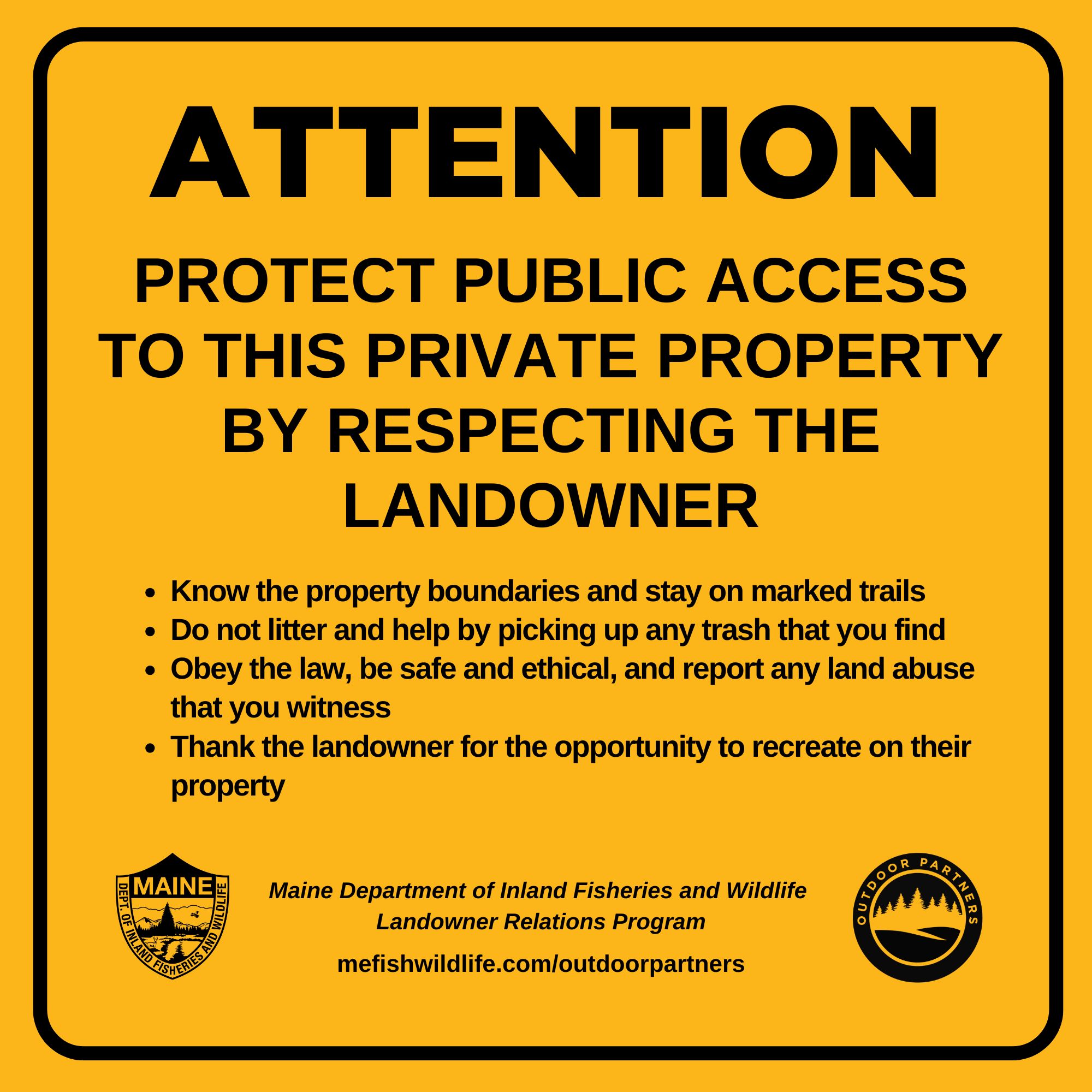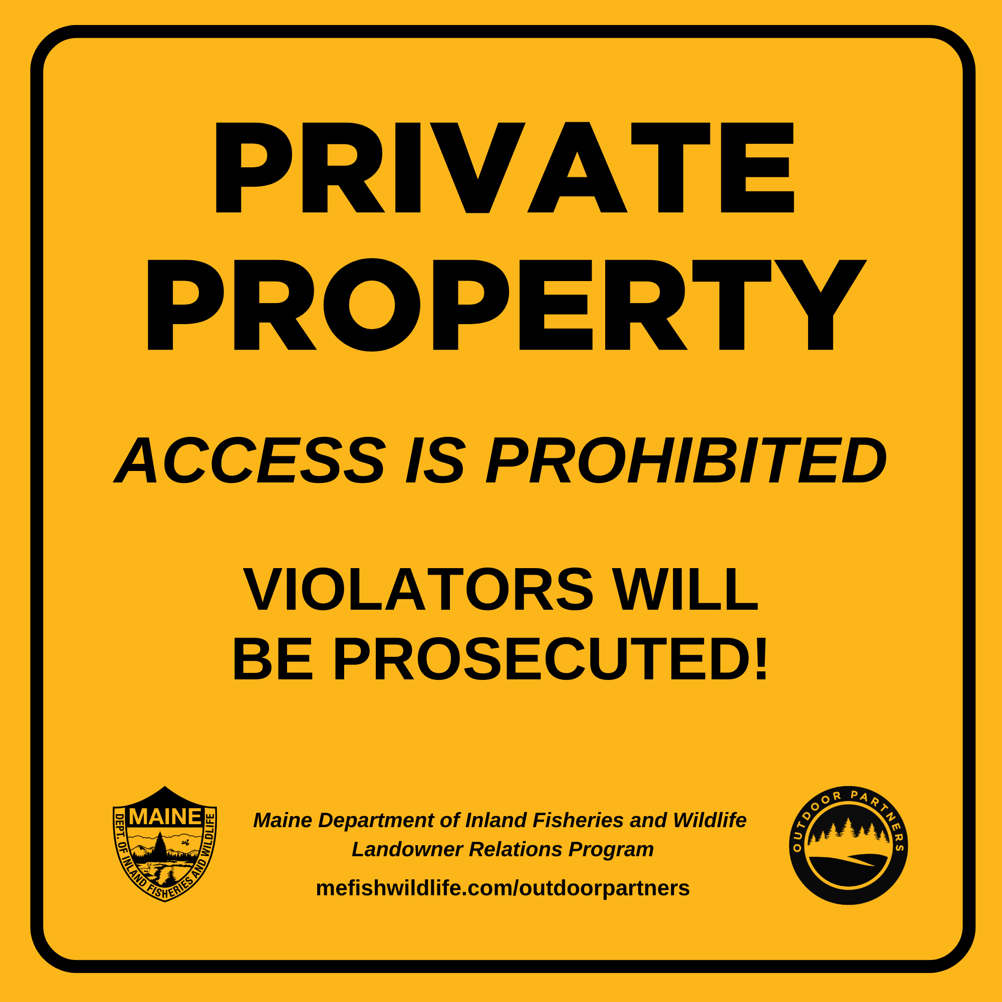 Landowners can request complimentary signs to be shipped or picked up at MDIFW's headquarters in Augusta.
